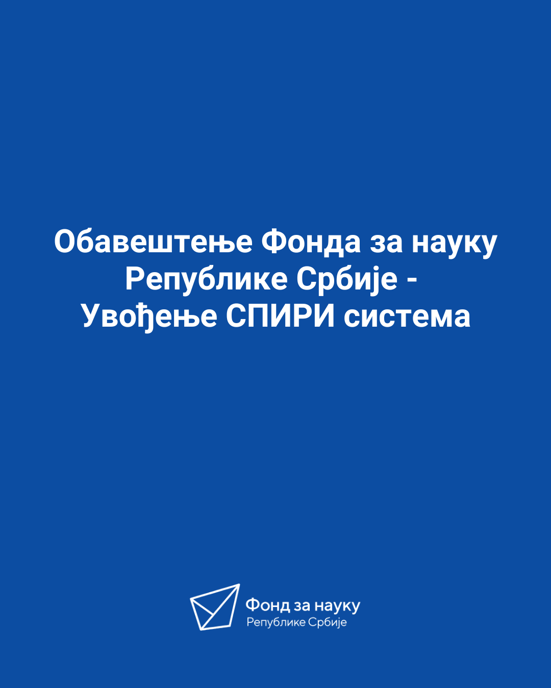 Обавештење Фонда за науку – Увођење СПИРИ система